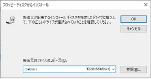 8. 「フロッピー ディスクからインストール」画面に戻ったら「製造元のファイルのコピー元(C):」が,「手順1:プリンタドライバのダウンロード」で解凍したプリンタドライバのフォルダを指しているか確認し,「OK」ボタンを押下してください.