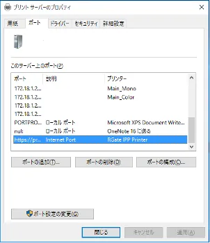 5. 「プリントサーバーのプロパティ」画面が開きますので,「ポート」タブを開いてください.