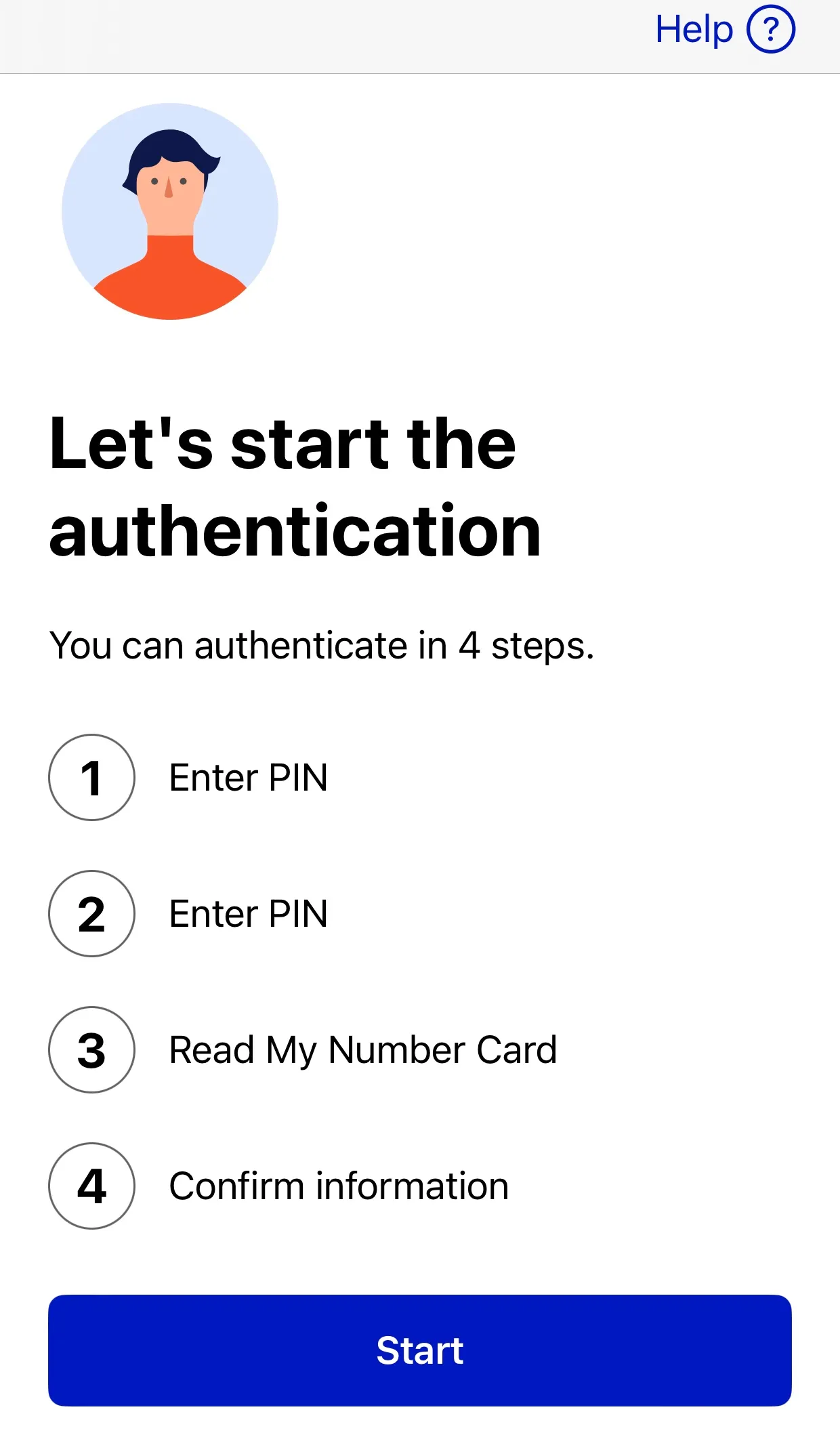 Tap “Start” to proceed with the authentication steps.