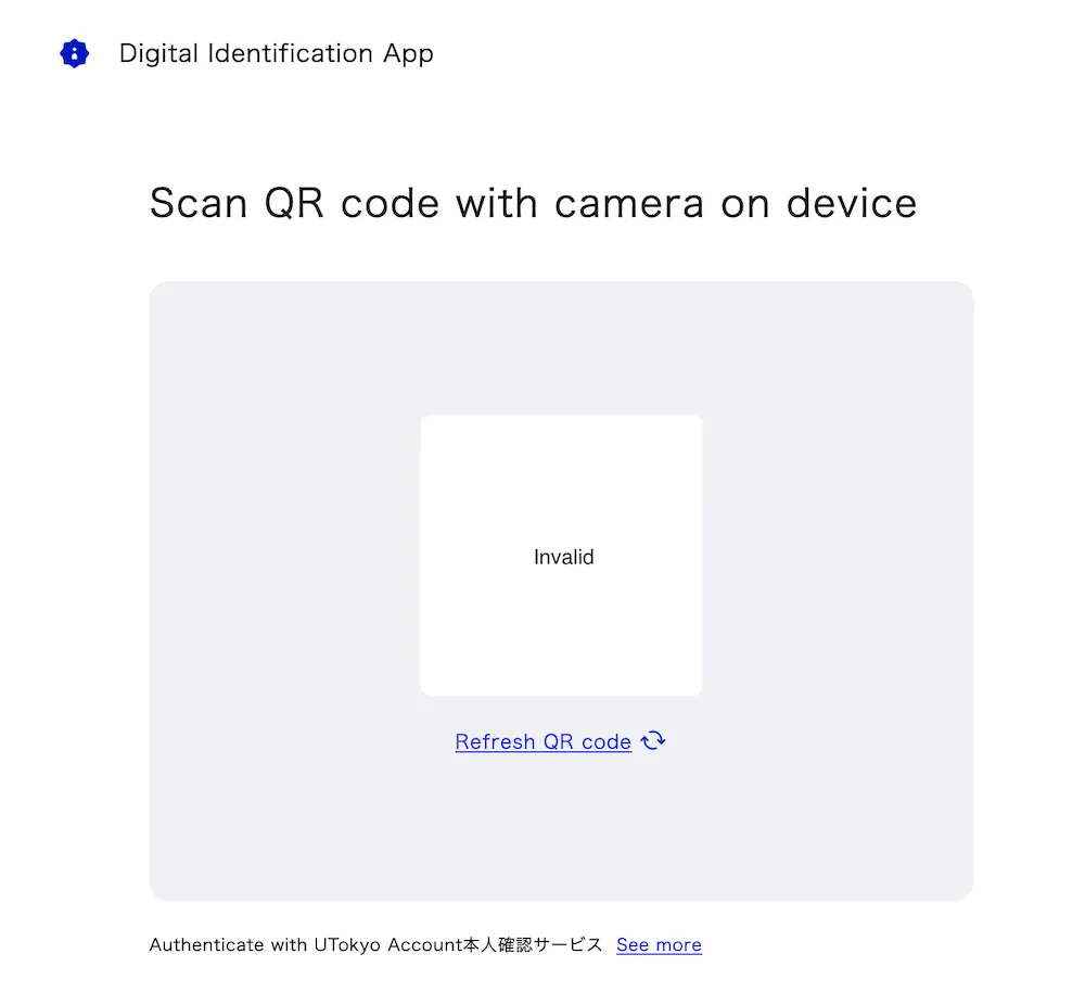 If the app is not installed, a screen will prompt you to install it. Depending on your browser’s display zoom settings, it may be detected as a PC access, and a screen with a QR code may be displayed. In either case, please go back to Step 1 to install and register the digital identification app.