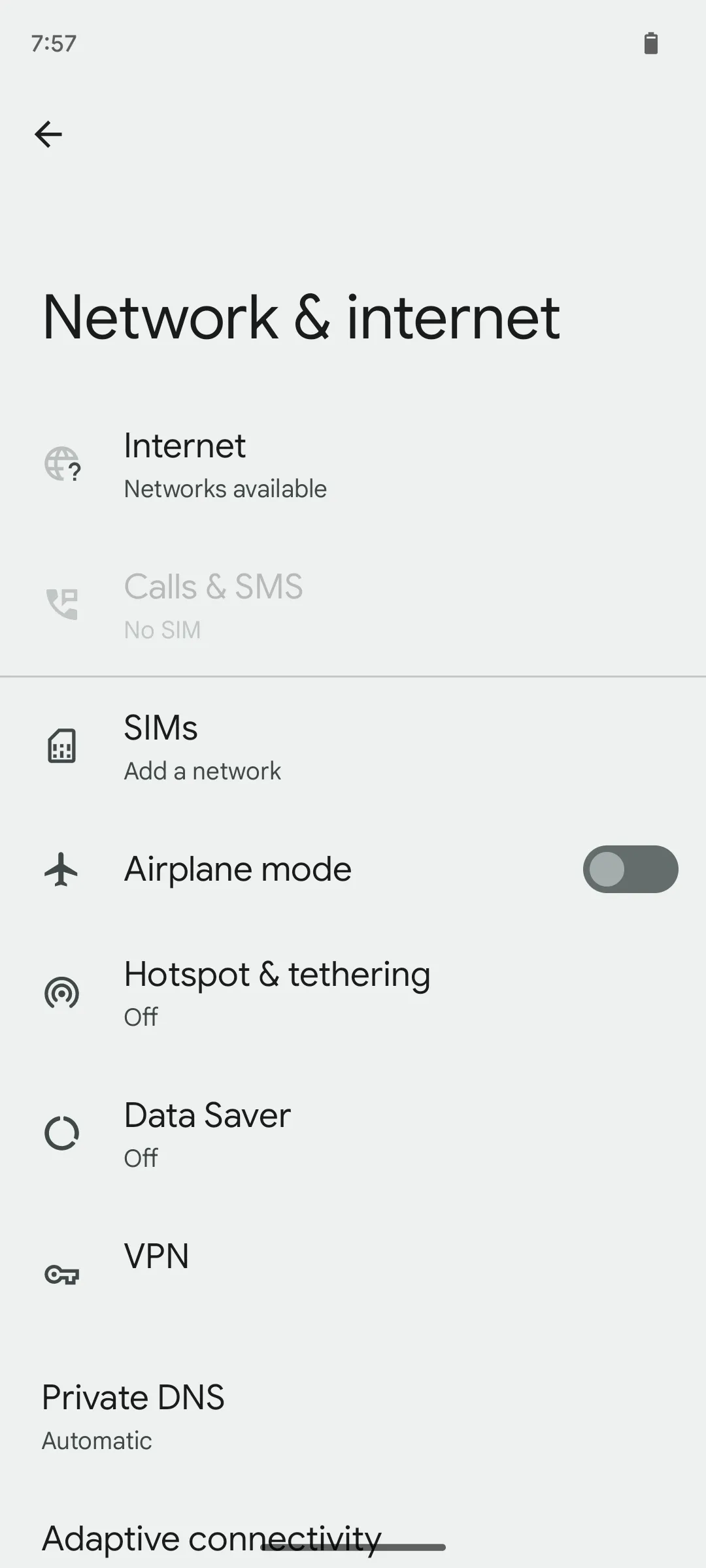 In settins find “Internet” in the “Network & Internet” menu and turn on the Wi-Fi function. Note that the names in the actual menu may vary depending on the specific model. Find the corresponding settings of the proper category as needed. Likewise, in the following procedures, please read the respective content and procedures when necessary.