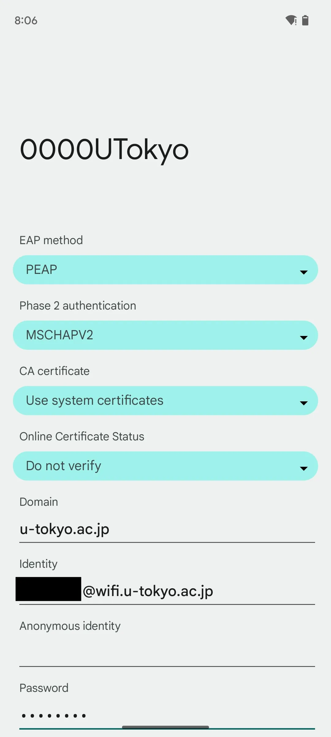 | Password | Enter the password for the UTokyo Wi-Fi |