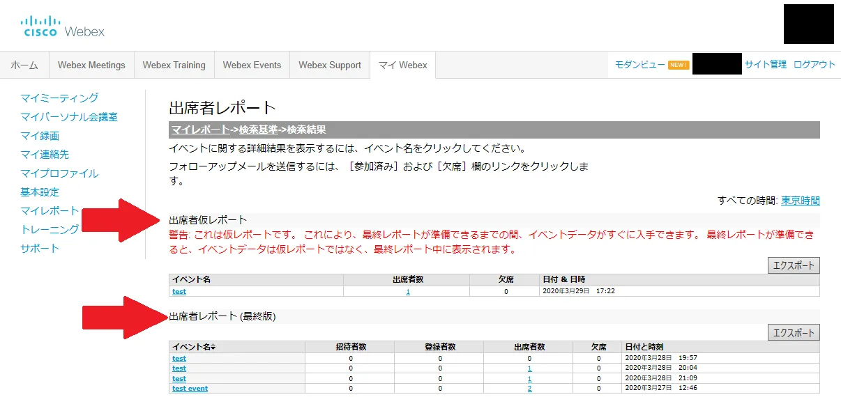 4. A list of training will be displayed. If the report is shown in the “Attendance Report (provisional version)” section, the proper report has not yet been generated. Please wait for it to move to the “Attendance Report (final version)” section. Then click on the event name.
