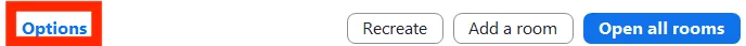 4. Click “Show” next to “Options” to display the options list. From there, check “Breakout Room pre-assign”. In addition to “Create Rooms” and “Import from CSV”, your saved assignments will be selectable.