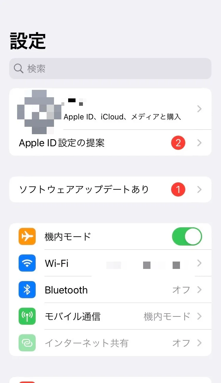 設定アプリで「Wi-Fi」という設定項目を選択し,Wi-Fi機能のトグルスイッチをオンにしてください.