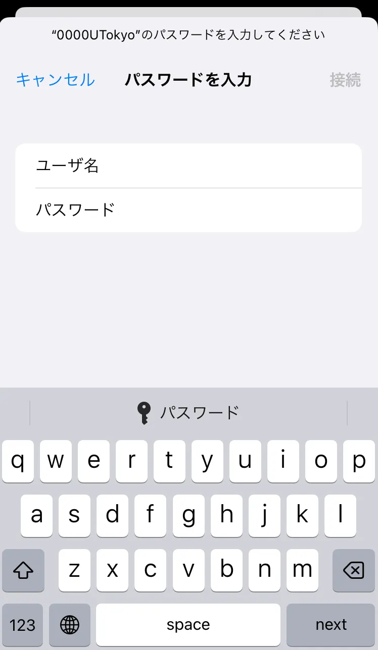パスワードUTokyo Wi-Fiのパスワードを入力してください