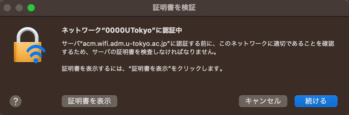 macOS 13でUTokyo Wi-Fiを利用する