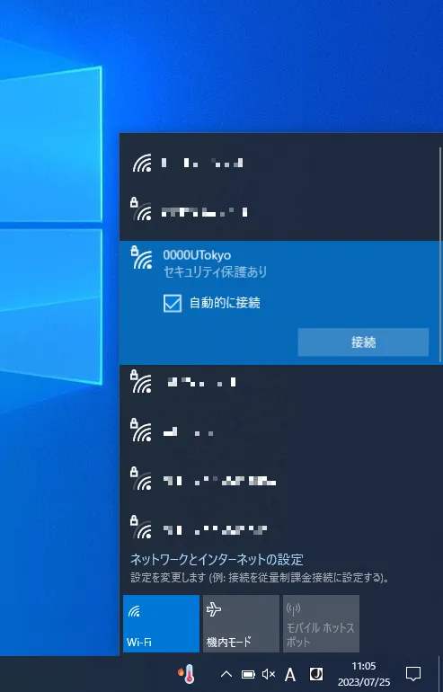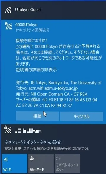 SSIDの一覧の中から,0000UTokyoというSSIDを再度選択してください.