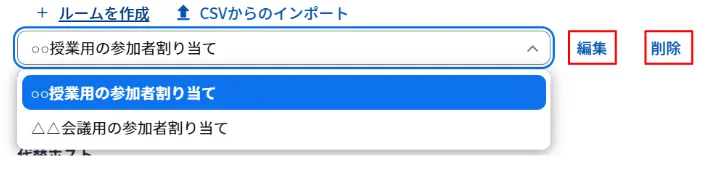 1. 対象のルームにカーソルを合わせて,「割り当て」を選んでください.