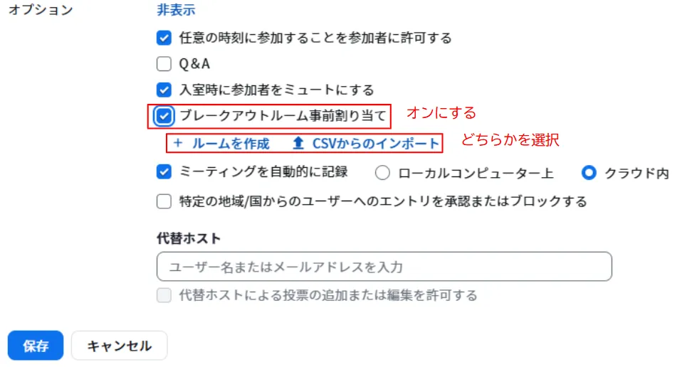3. ブレイクアウトルームに関連する機能について,必要な項目をオンにしてください.