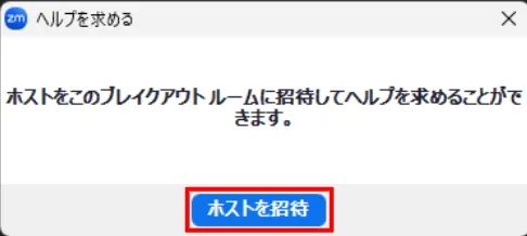 2. 下図のようなウィンドウが出てくるので,「ホストを招待」を押してください.すると,ホストに送信元のブレイクアウトルームに参加するように通知が届きます.